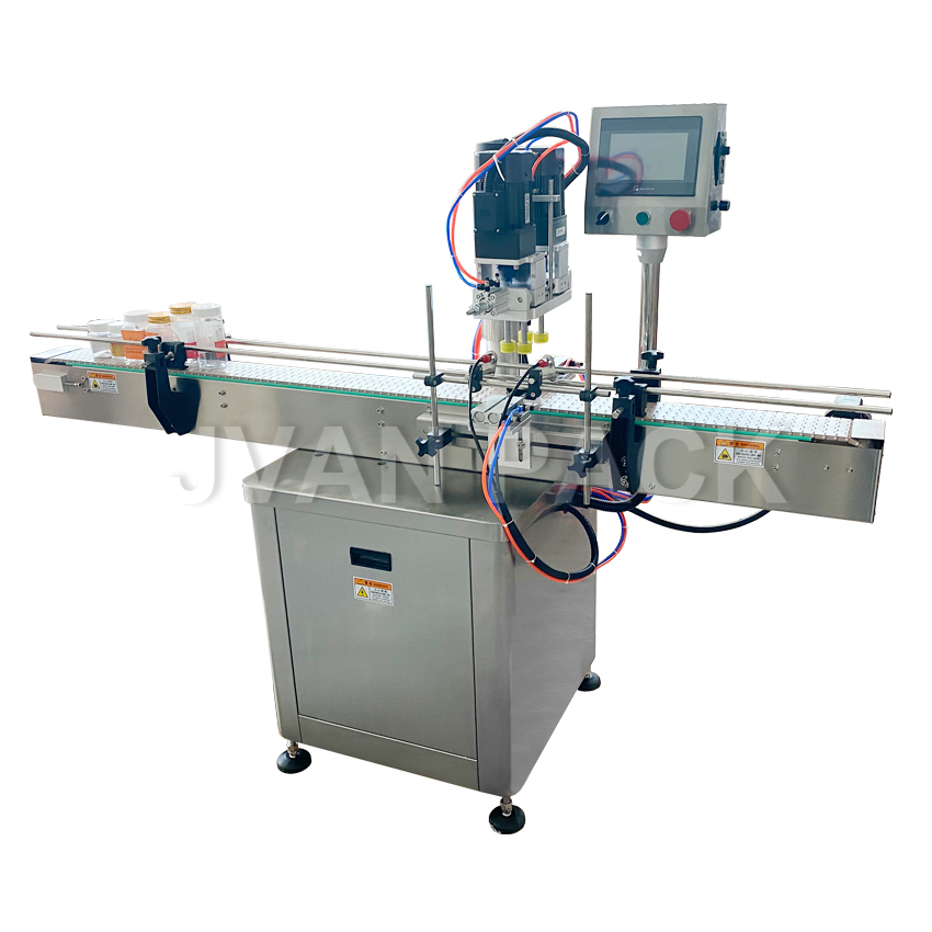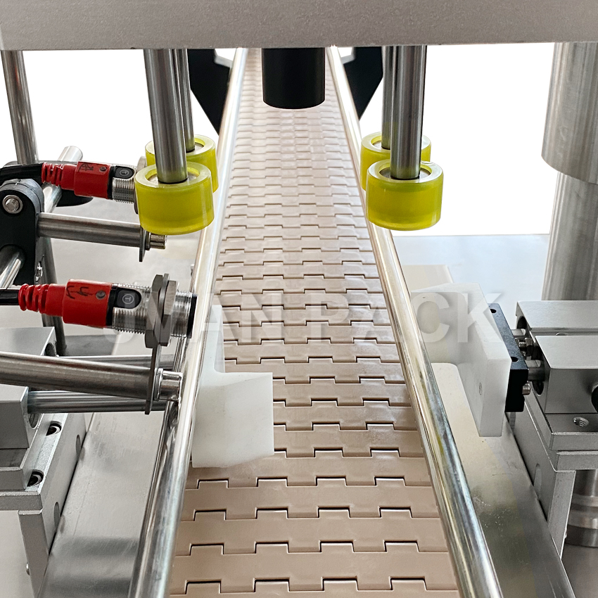Esta máquina se utiliza para el límite automático de botellas de plástico y botellas de vidrio en cosméticos, alimentos y bebidas, pesticidas y fertilizantes, la industria química, se puede aplicar a una variedad de tipos de botellas, alta eficiencia de producción.