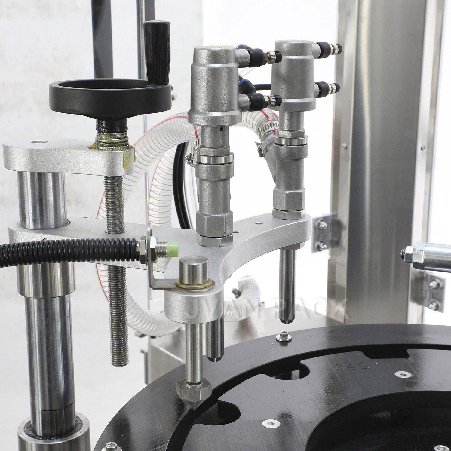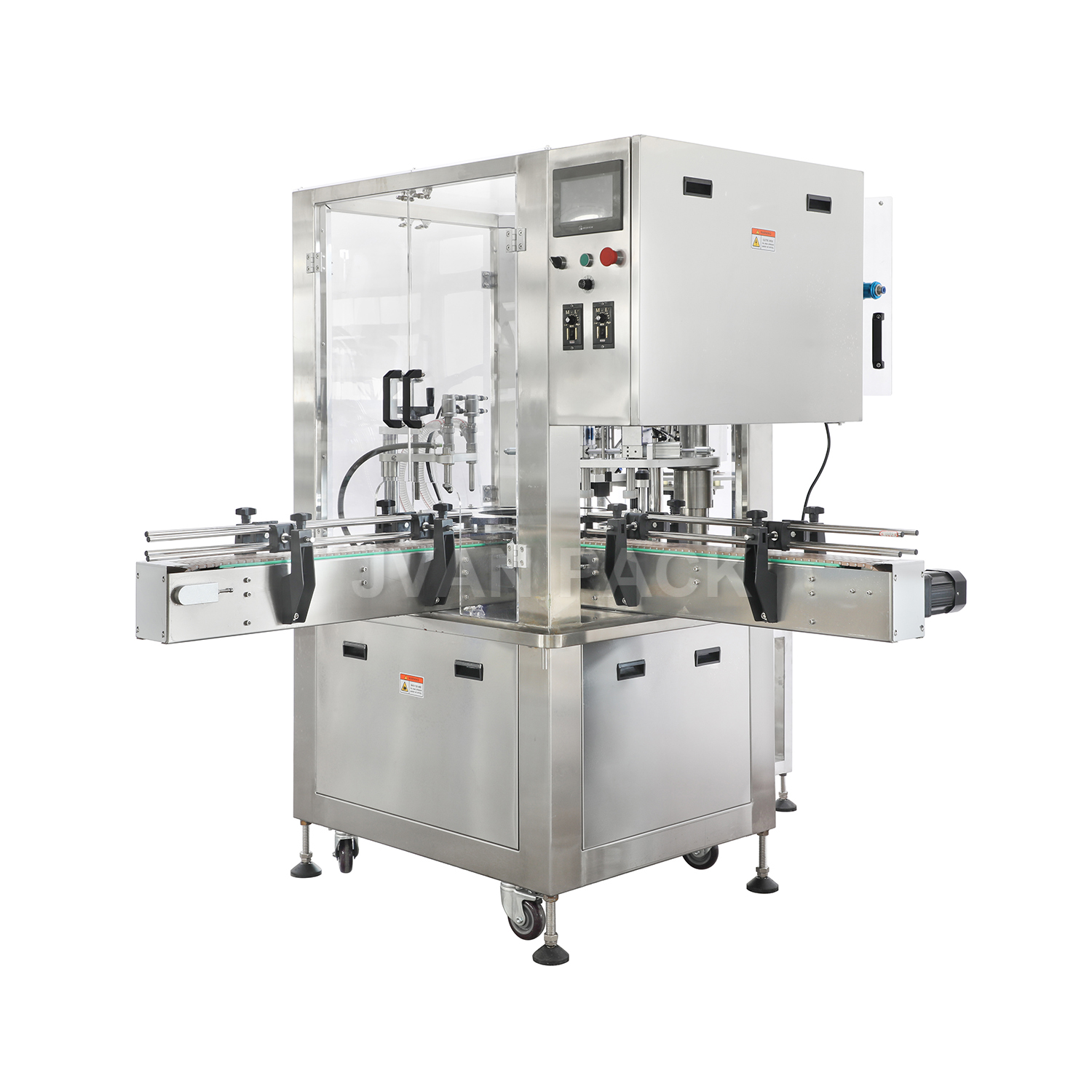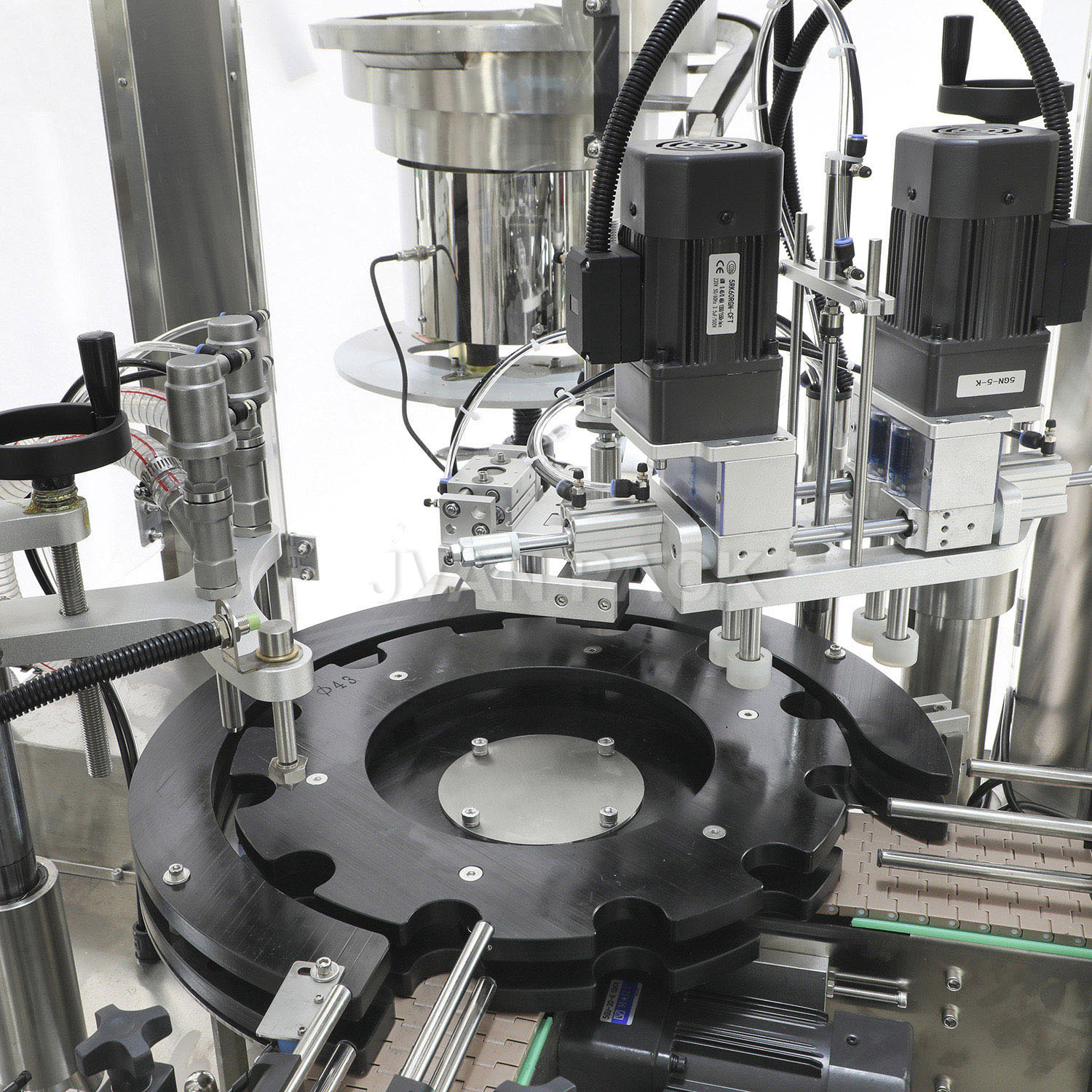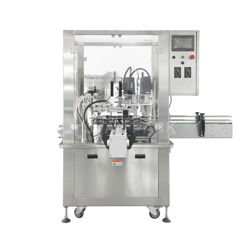 1. Esta máquina es la máquina principal de la línea de llenado de líquidos de viales. Tiene las funciones de alimentación automática, relleno auotomático, cubierta automática y sellado.