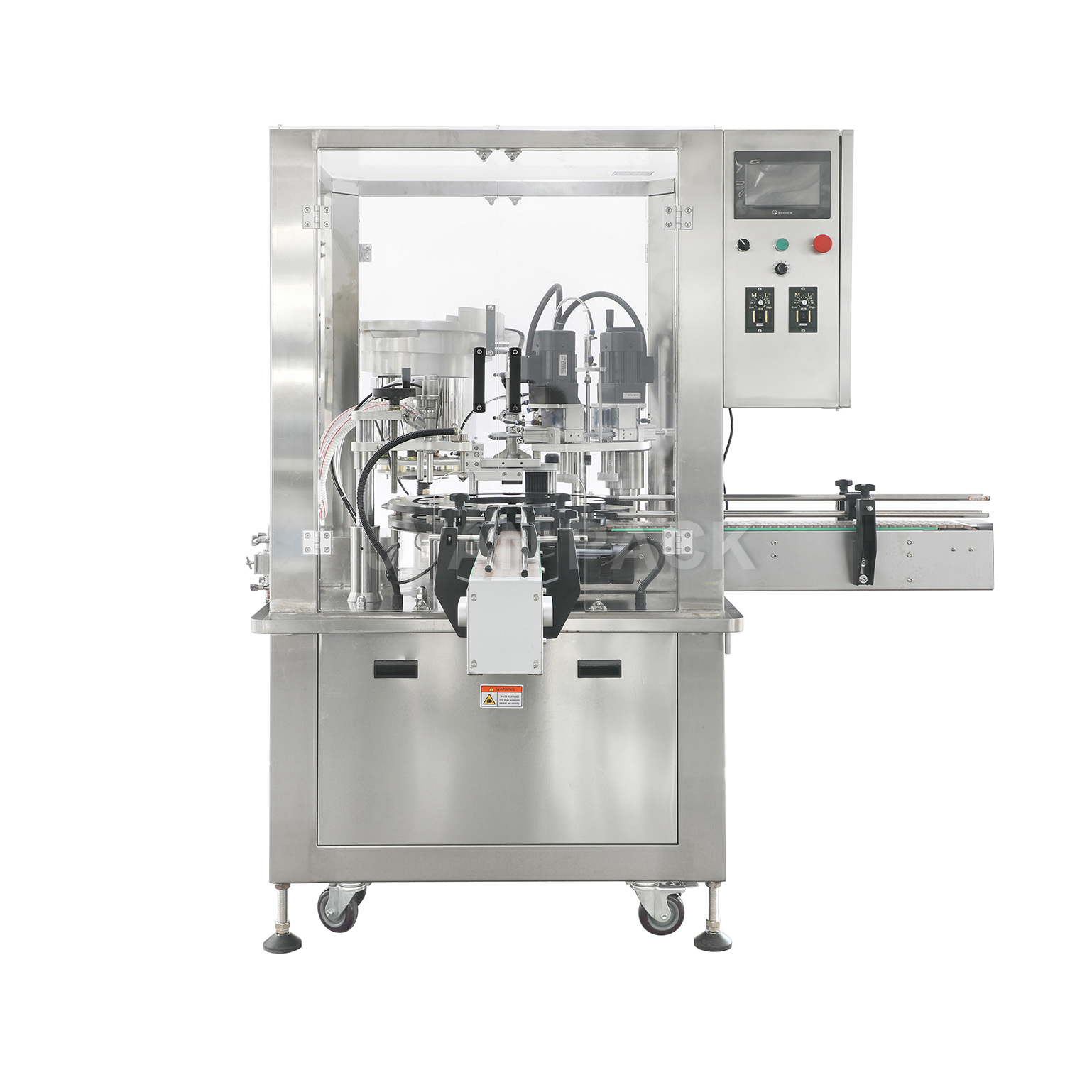 Esta máquina se utiliza para el límite automático de botellas de plástico y botellas de vidrio en cosméticos, alimentos y bebidas, pesticidas y fertilizantes, la industria química, se puede aplicar a una variedad de tipos de botellas, alta eficiencia de producción.