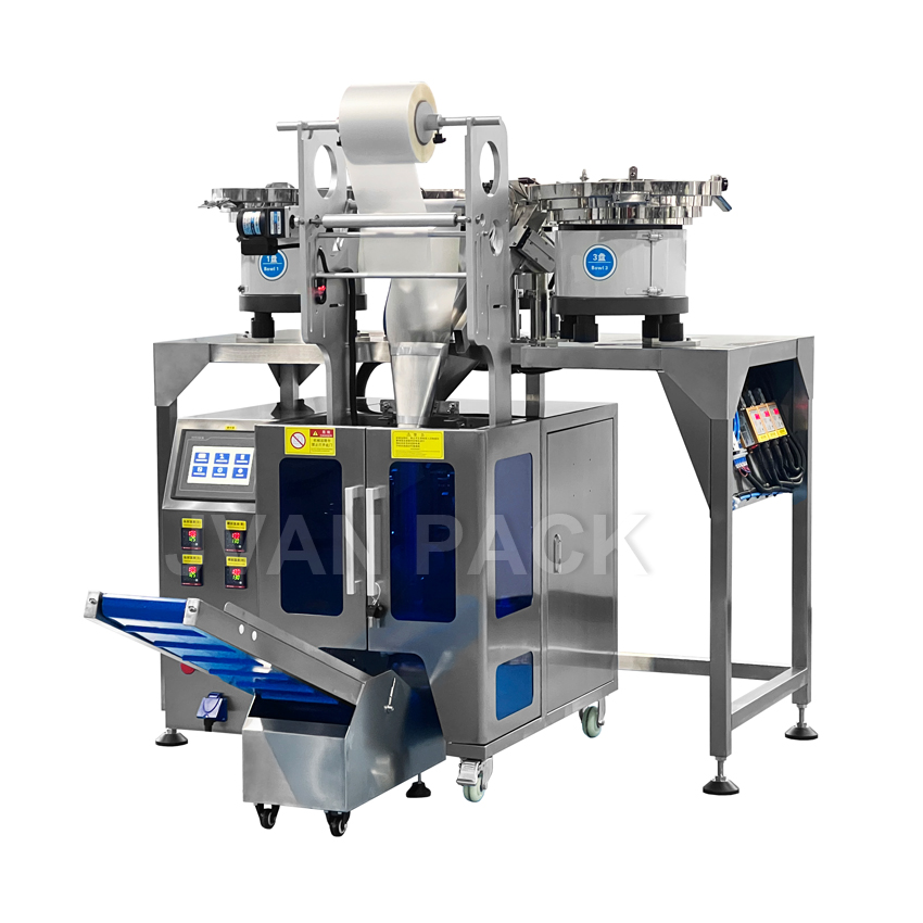 Adecuado para productos que requieren un ancho de la bolsa de menos de 150 mm y un disco vibrante que puede clasificar automáticamente los materiales, como dulces de alimentos y tabletas de leche; Tabletas, píldoras, cápsulas; Sujetadores de hardware como pernos, tuercas, lavadoras, etc. Accesorios de muebles, bloques de juguetes, etc.