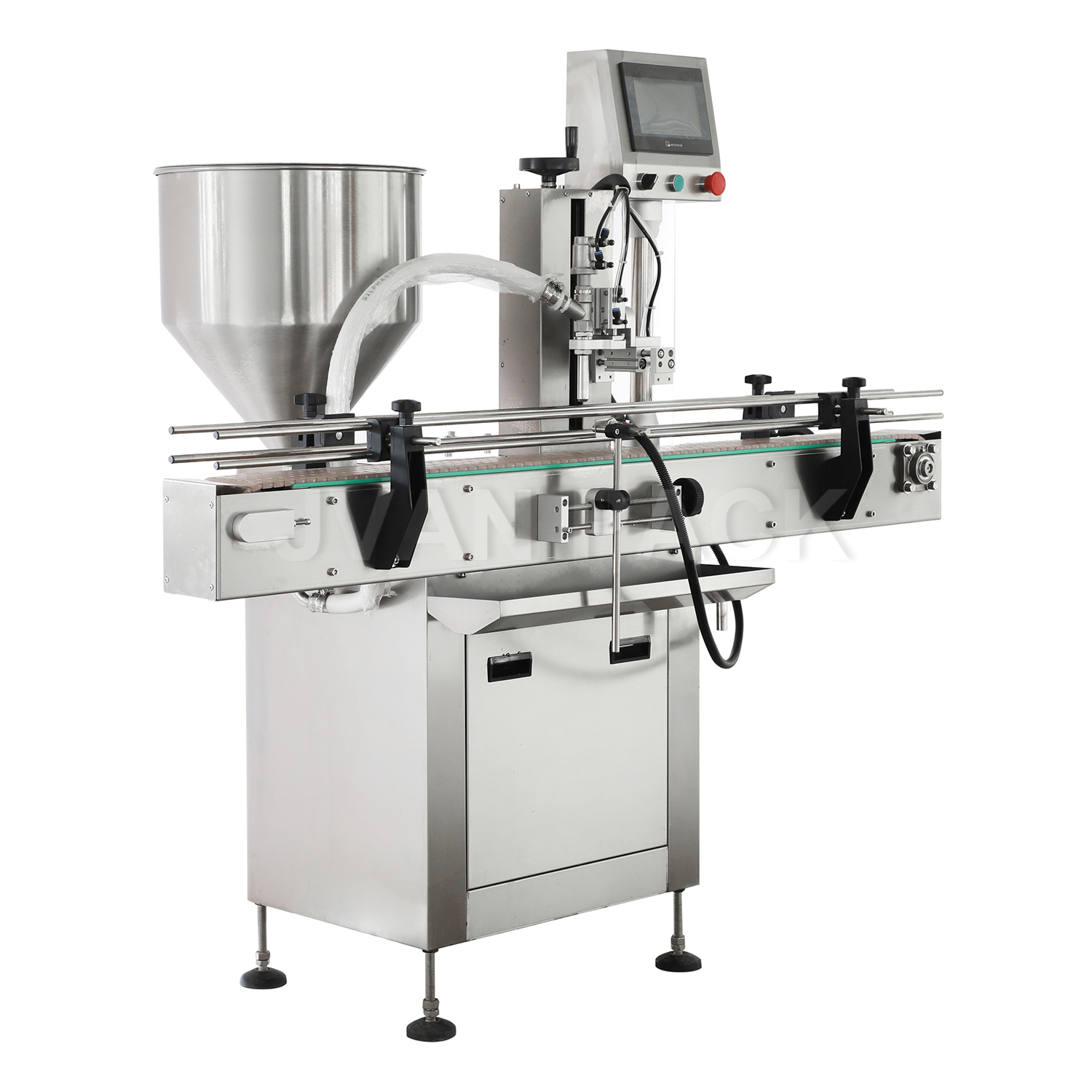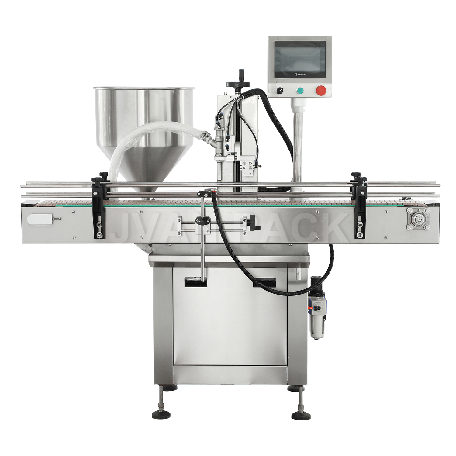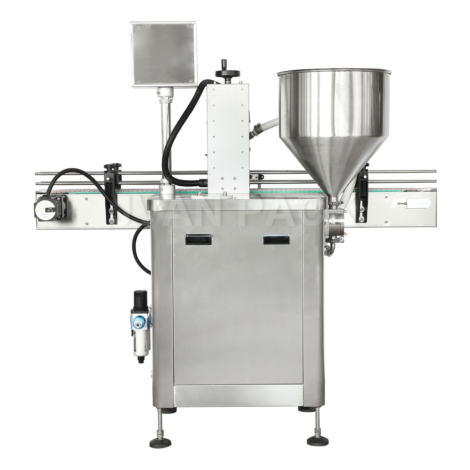 El sistema de llenado es impulsado por un servomotor que garantiza una alta precisión de llenado y también es fácil configurar el volumen de llenado directamente en la pantalla táctil. Se utiliza ampliamente en las industrias cosmética, alimentaria, química especializada, farmacéutica y de cuidado personal.
