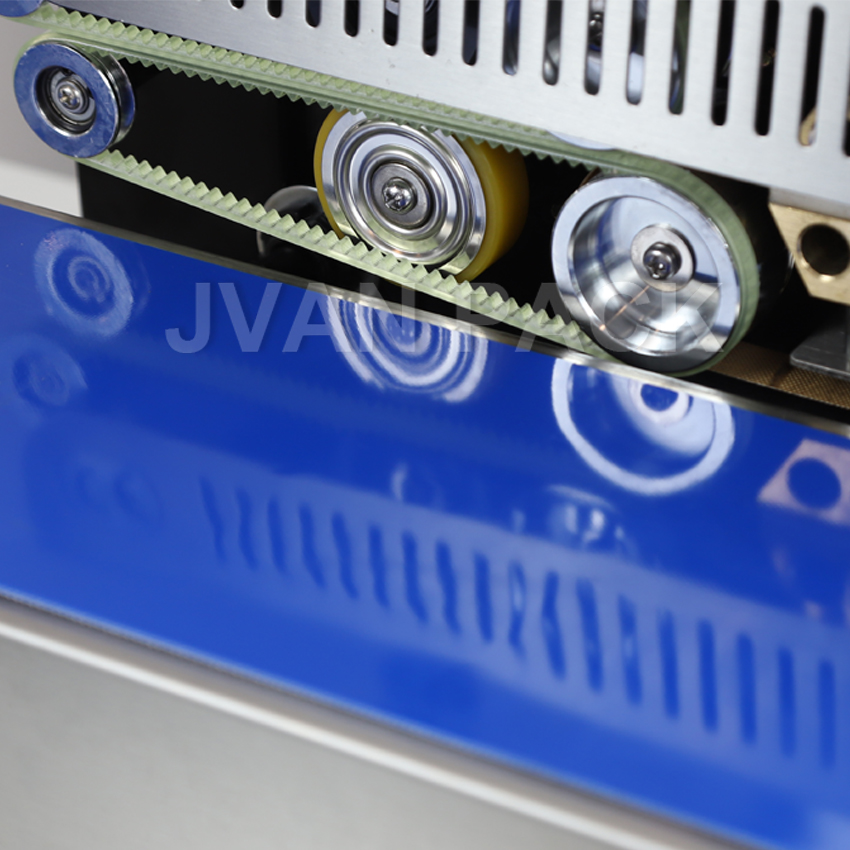 Cinta transportadora > La máquina selladora está equipada con una cinta transportadora engrosada, estable y antifricción. | ![]() |