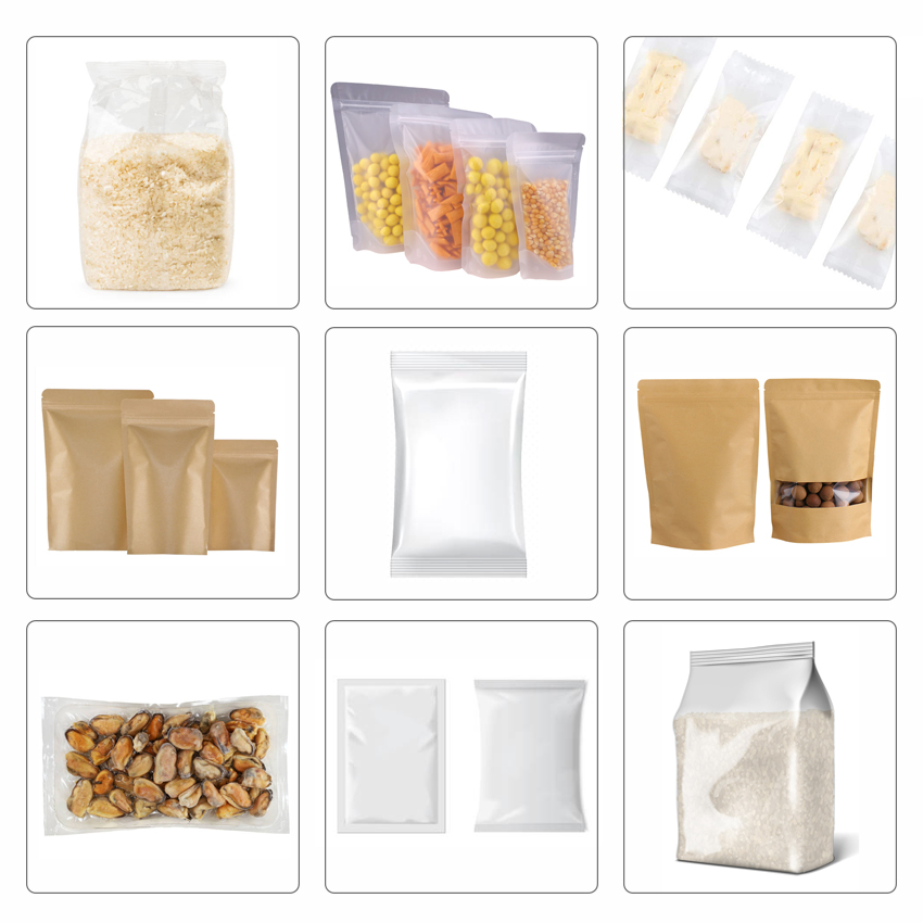 El diseño de esta selladora automática de banda la hace perfecta para la línea de producción. Es adecuado para alimentos, medicinas, artículos de primera necesidad, productos químicos, unidades electrónicas y envases de semillas. Se adapta a muchos materiales de película diferentes, como PP, PE, PV, OPP, PS.